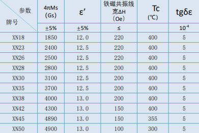 温度稳固性好;居里温度高,4πMs高,可用于高频器件